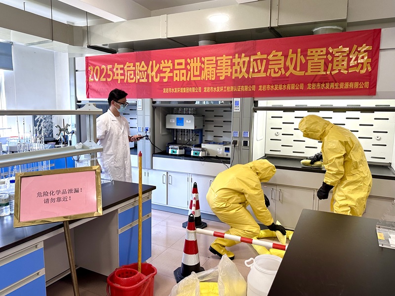 為深入貫徹習(xí)近平總書(shū)記關(guān)于安全生產(chǎn)的重要論述,提升危險(xiǎn)化學(xué)品泄漏事故應(yīng)急處置能力,7月3日,龍巖市水發(fā)環(huán)工檢測(cè)認(rèn)證有限公司成功舉辦了2025年危險(xiǎn)化學(xué)品泄漏事故應(yīng)急處置演練。此次演練由龍巖市水發(fā)環(huán)境集團(tuán)有限公司主辦,龍巖市水發(fā)環(huán)工檢測(cè)認(rèn)證有限公司承辦,龍巖市水發(fā)排水有限公司、龍巖市水發(fā)再生資源有限公司協(xié)同協(xié)辦,以實(shí)戰(zhàn)演練?;钒踩q{護(hù)航。